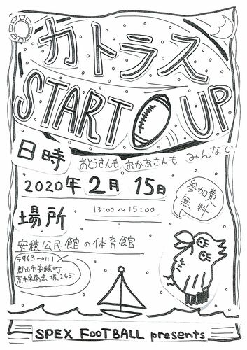 スペックスフットボールと郡山協会では、郡山市中央公民館主催の夏休みエンジョイ企画として、フットボール体験スクールをおこないます。 郡山市総合体育館を全面使って、3~5人制のミニフットボール(愛称『カトラス』)とコントロールキックの遊びをおこな…